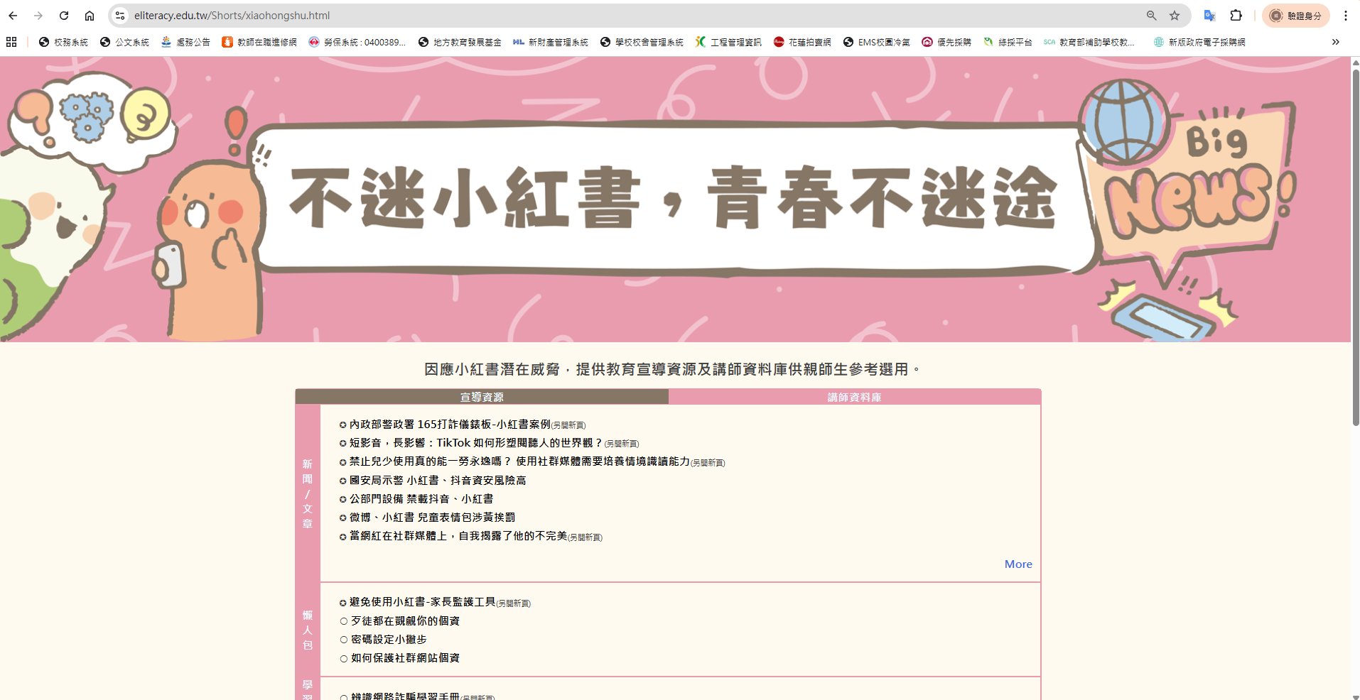 近年小紅書 APP 為國人下載使用,產生資訊安全疑慮、詐騙或其他校園安全事件,經查內政部警政署 165 打詐儀表板「縣市案例」列有 423 件因使用小紅書遭詐騙之案例,態樣包含:網路購物詐騙、假交友(投資詐財)詐騙、假買家騙賣家詐騙、假求職詐騙、色情應召詐財詐騙等。教育部建置「不迷小紅書,青春不迷途」專區,提供小紅書潛在威脅教育宣導資源及講師資料,請學校推廣運用,( https://eliteracy.edu.tw/Shorts/xiaohongshu.html )